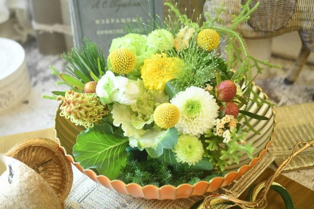 12月29日(月)から31日(水)着 VERTDEGRIS お正月アレンジ2026モデル(イエローグリーン)6000円タイプ