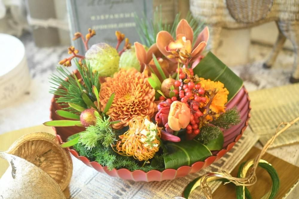 12月29日(月)から31日(水)着 VERTDEGRIS お正月アレンジ2026モデル(オレンジレッド)6000円タイプ