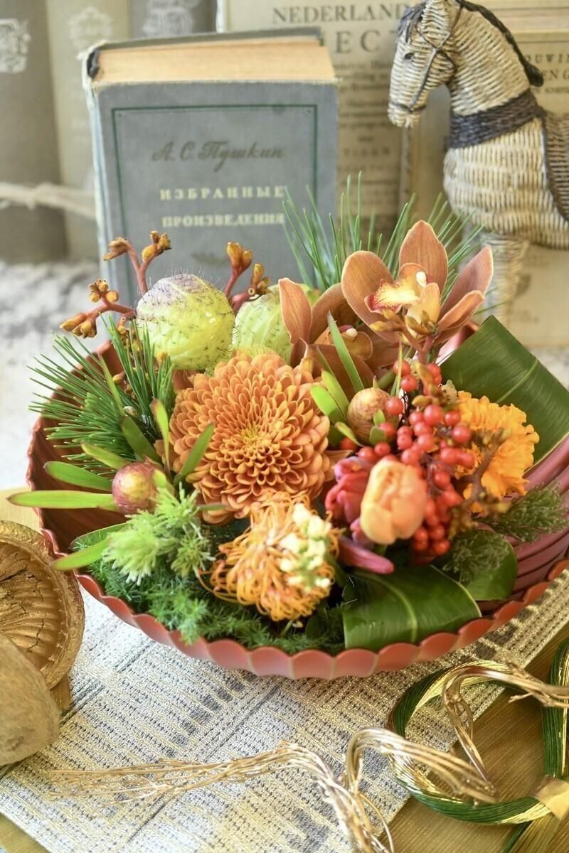 12月29日(月)から31日(水)着 VERTDEGRIS お正月アレンジ2026モデル(オレンジレッド)6000円タイプ